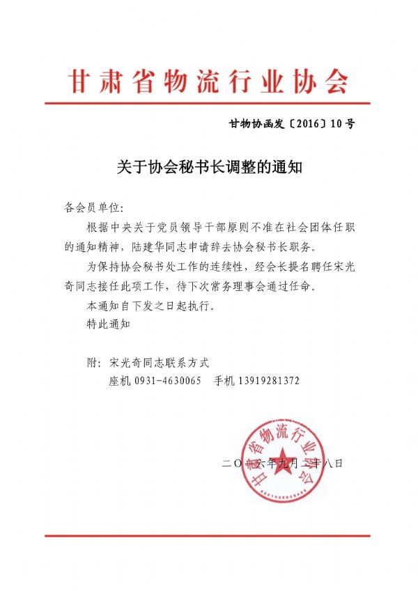 關于協會秘書長調整的通知