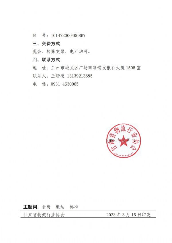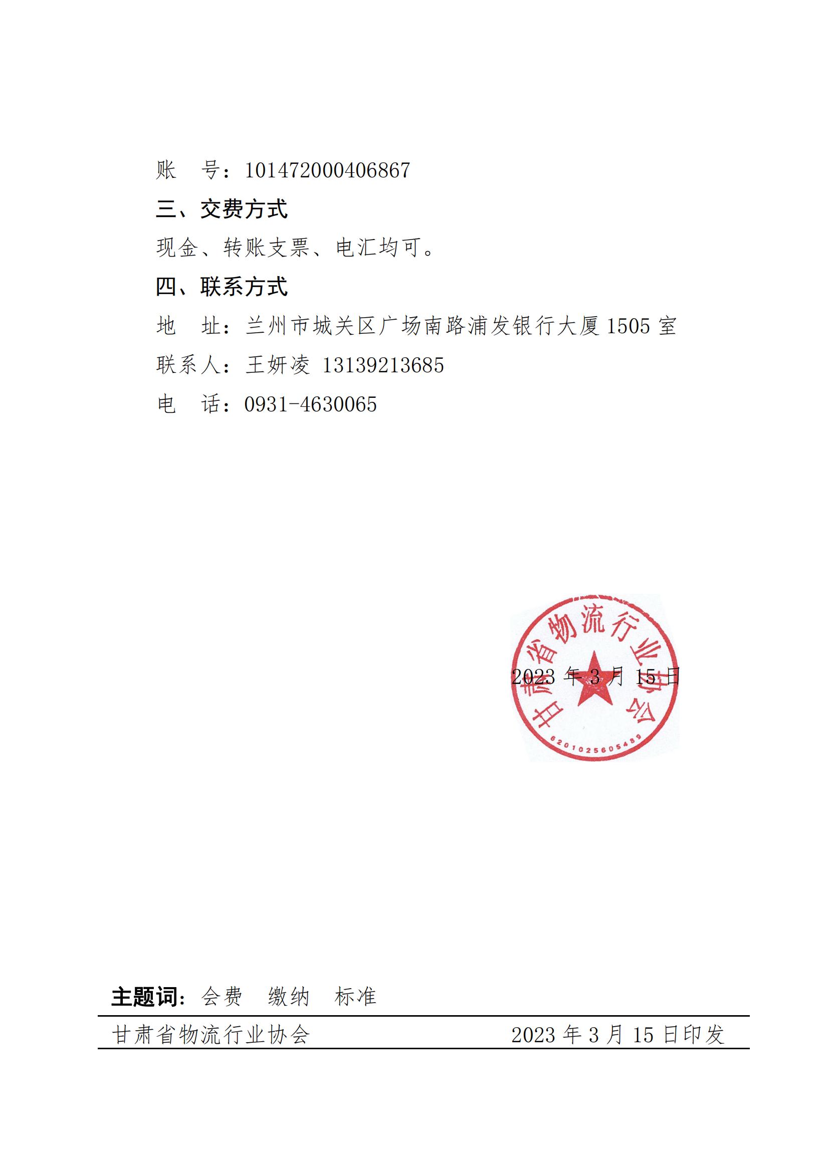 甘肅省物流行業(yè)協(xié)會會費(fèi)繳納標(biāo)準(zhǔn)