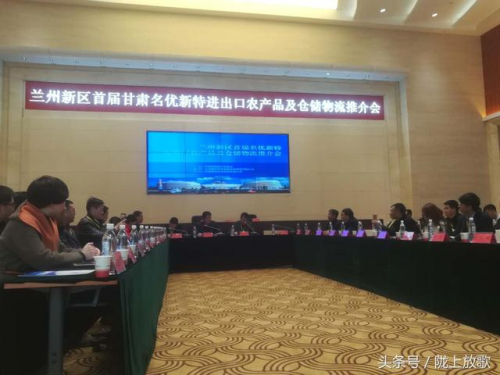 2017年11月17日,蘭州新區首屆甘肅名優新特進出口農產品及倉儲物流推介會在蘭州新區產業孵化大廈召開。推介會由甘肅省物流行業協會主辦,蘭州新區商貿物流投資集團有限公司承辦,來自甘肅省14個地州市80多家企業、100多位企業家和金融界人士參加了推介會。