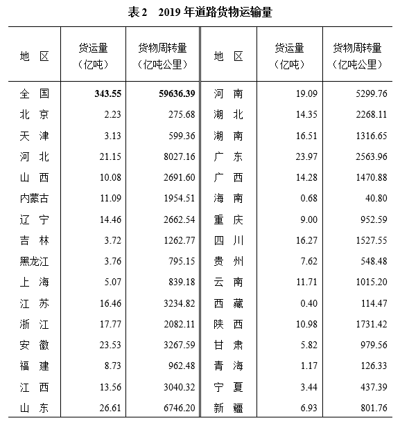 交通運輸部:2019年道路貨物運輸量專項調查公報