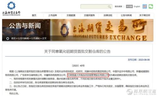 上海期貨交易所氧化鋁期貨首批交割倉庫在甘肅國通所在的蘭州新區設立,有利于充分發揮物流樞紐、對外貿易和工業基礎等優勢,進一步提升有色金屬交易平臺的影響力和定價權,極大吸引西北氧化鋁產業上下游資源向新區集聚,推動集倉儲、物流、貿易、加工等為一體的有色金屬全產業鏈發展。甘肅國通將以此為契機,按照核定庫容加快開展氧化鋁期貨交割倉庫業務準備工作,確保于2023年9月20日起,接受氧化鋁期貨標準倉單生成業務,穩健服務鋁產業集群高質量發展。