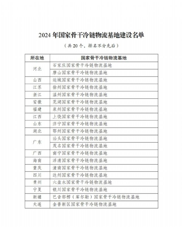 近日,國家發展改革委印發《關于做好2024年國家骨干冷鏈物流基地建設工作的通知》,發布新一批20個國家骨干冷鏈物流基地建設名單。2020年以來,國家發展改革委已分4批將86個國家骨干冷鏈物流基地納入重點建設名單,覆蓋31個省(自治區、直轄市,含新疆生產建設兵團)。